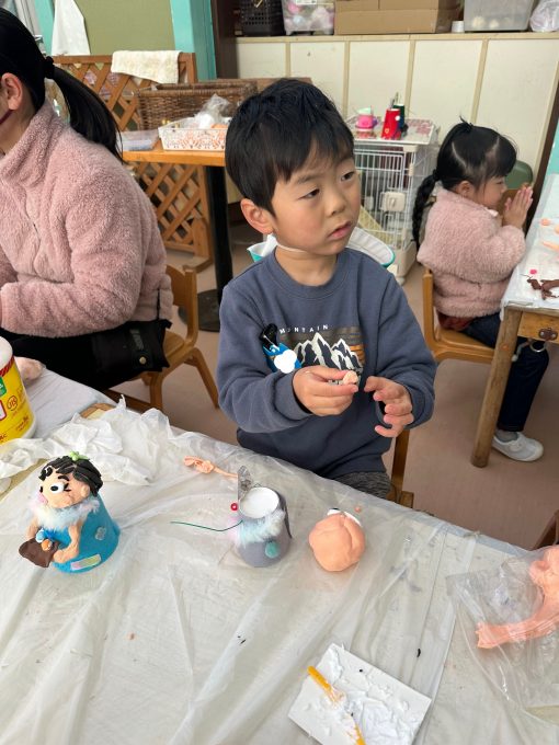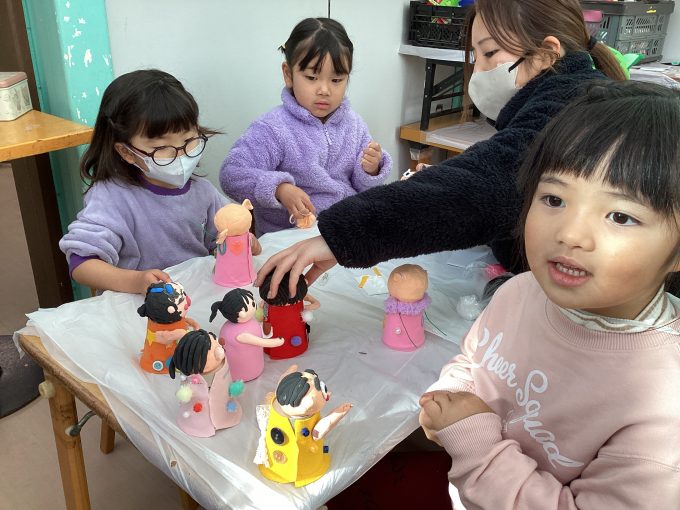 体の大きさや、肌、目、眉毛、髪の毛の形、色も自分たちで選択し、指先を使って細かいパーツ作りにもチャレンジしました
