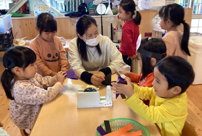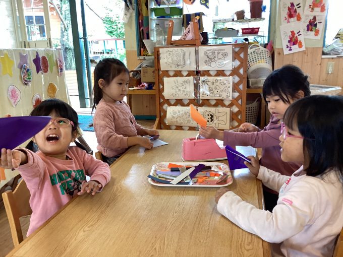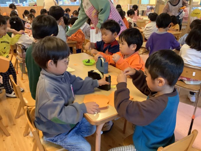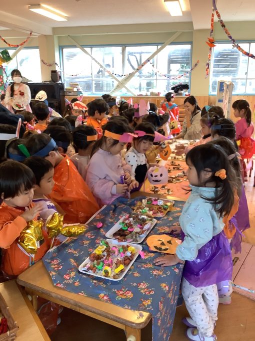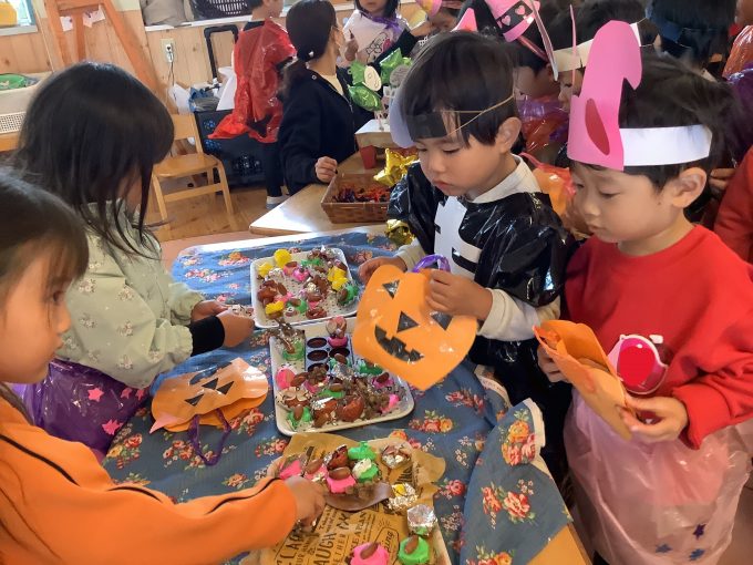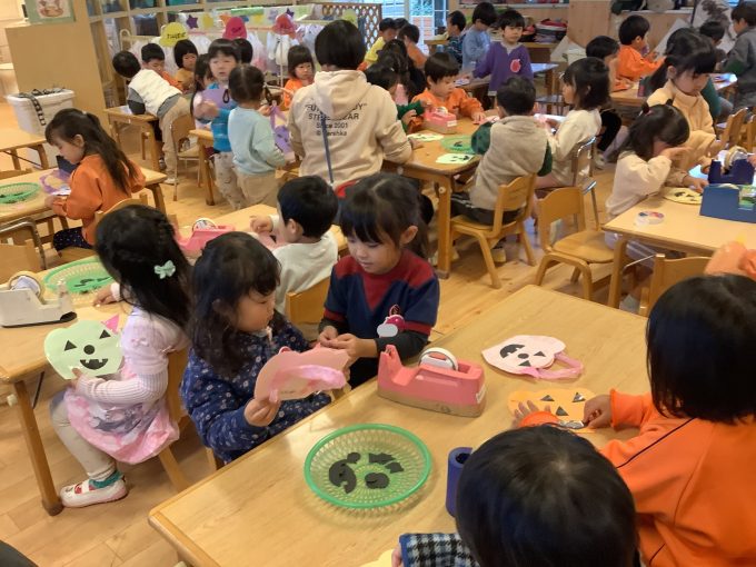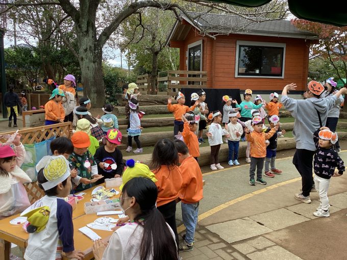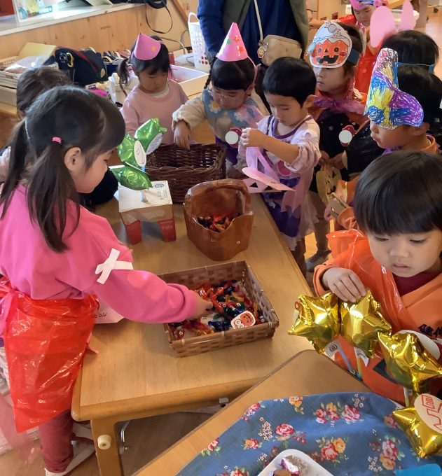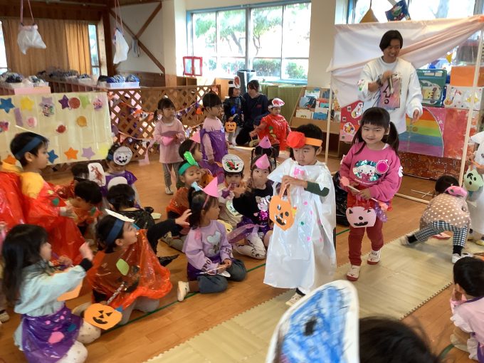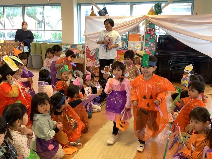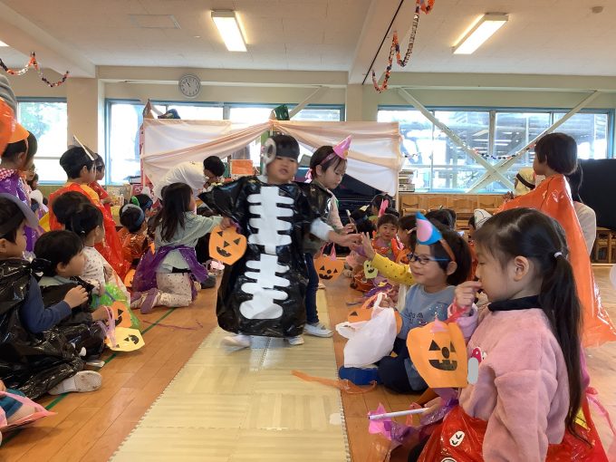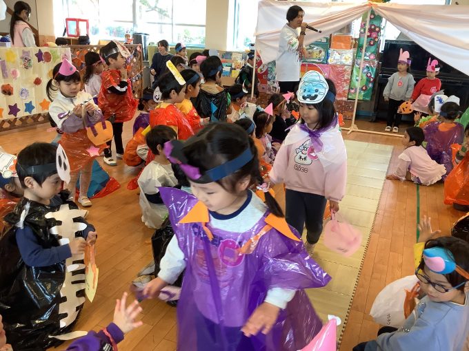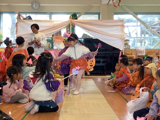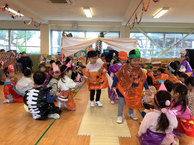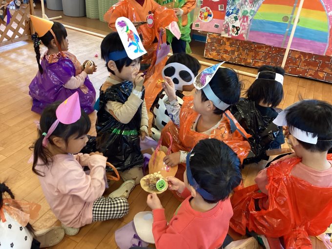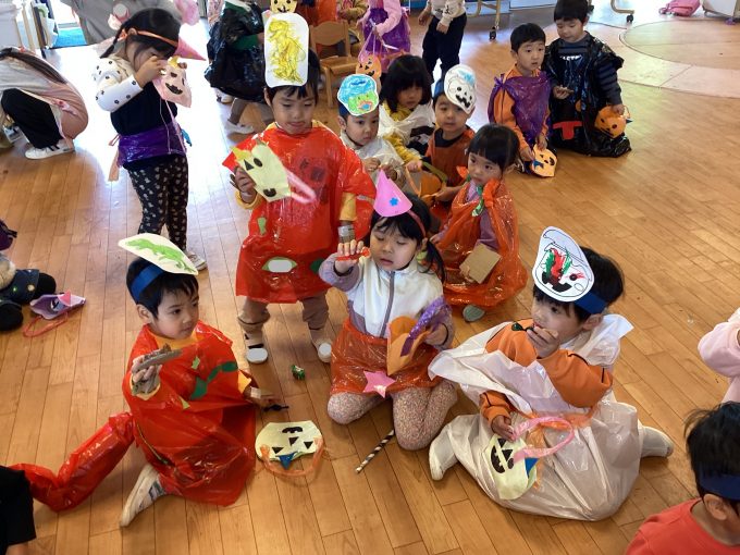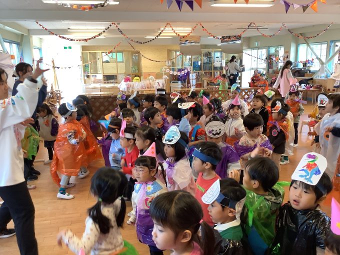 【年少:花組】ハッピーハロウィン♫ 2025年11月11日 園の生活 さーて!もうすぐハロウィン!! こんなハロウィンの劇場があるよ~♩と先生劇場タイム! 子どもたちも「やりたいやりたーい!」♡ みんなでパーティーの準備をはじめよう✨ ハロウィンバッグを作ろう~🎃飾りもいろいろ作ったよ♫ ✨ファッションショータイム✨ 💕お店屋さんも開店です💕 💃ダンスも踊って🕺 ハロハロがおやつを持ってきてくれました😆 楽しかったね~♫ 戻る