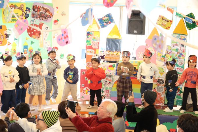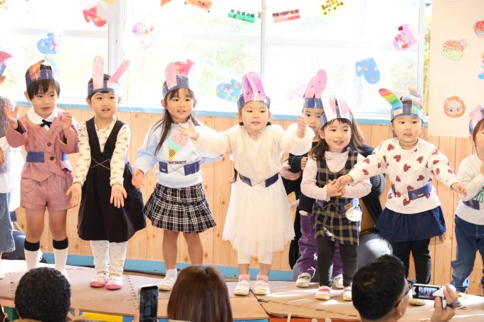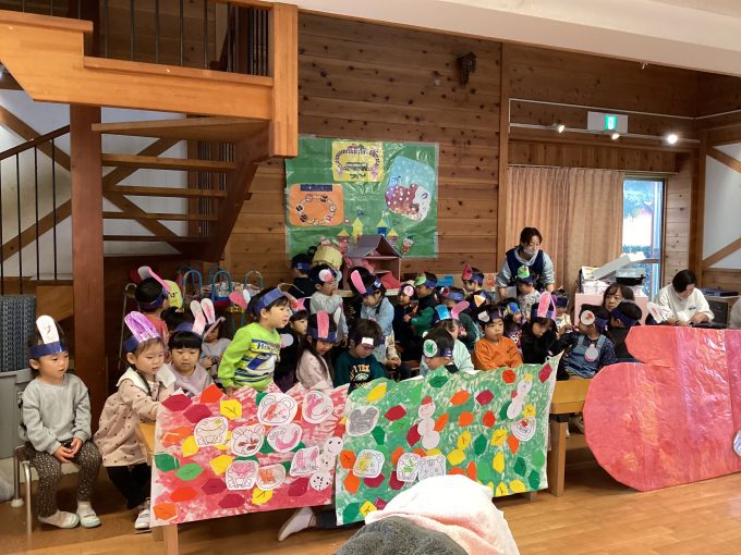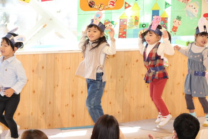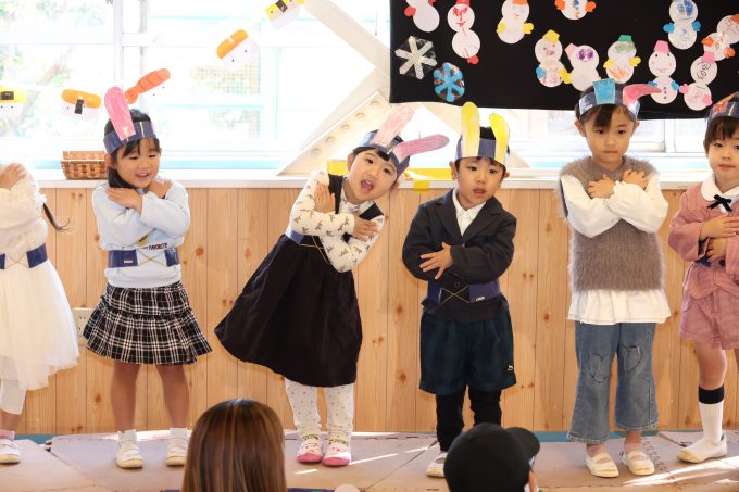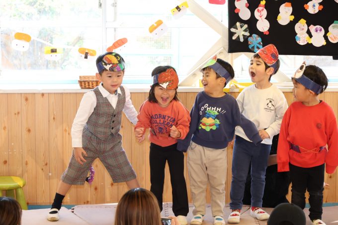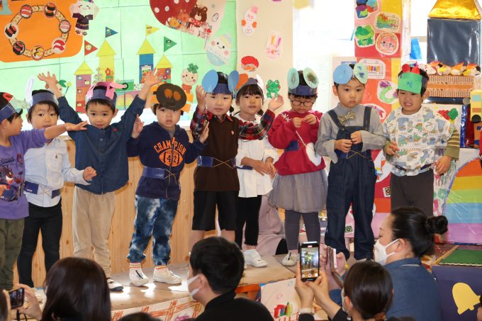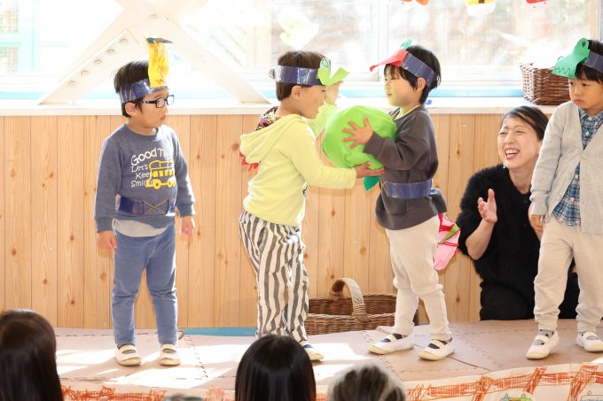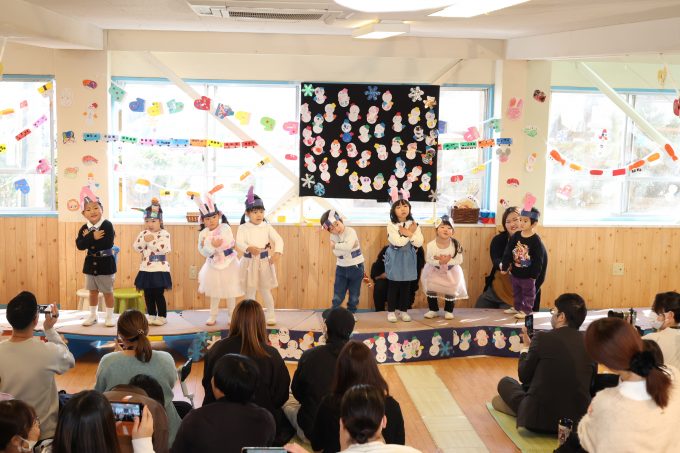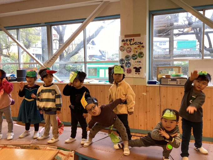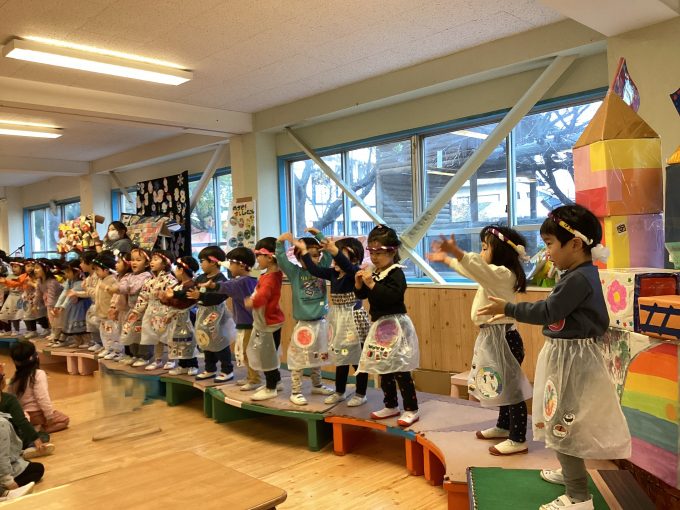 普段過ごしている保育室で、日頃楽しんでいるダンスや劇あそびの様子を