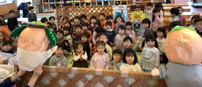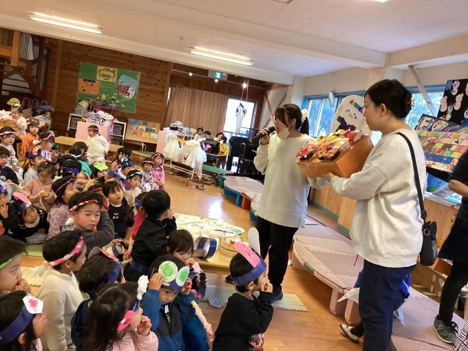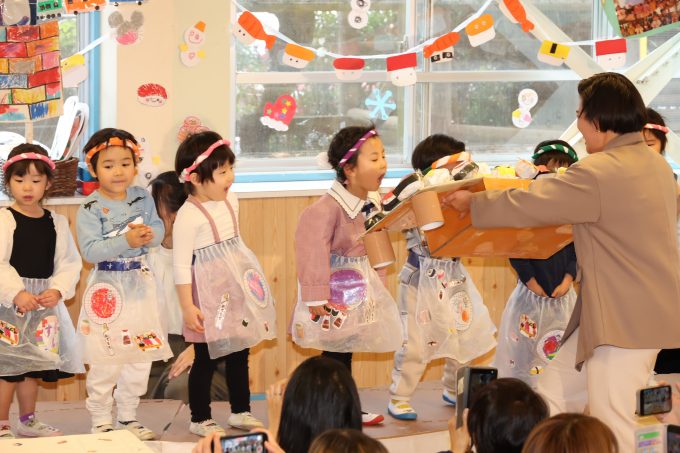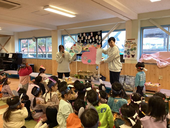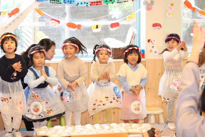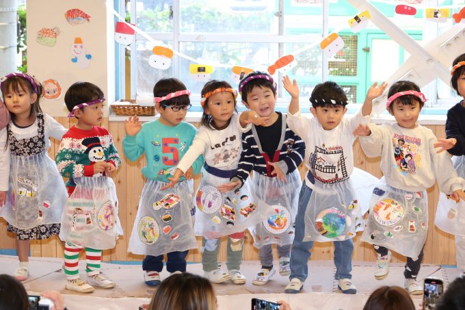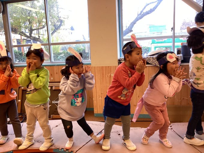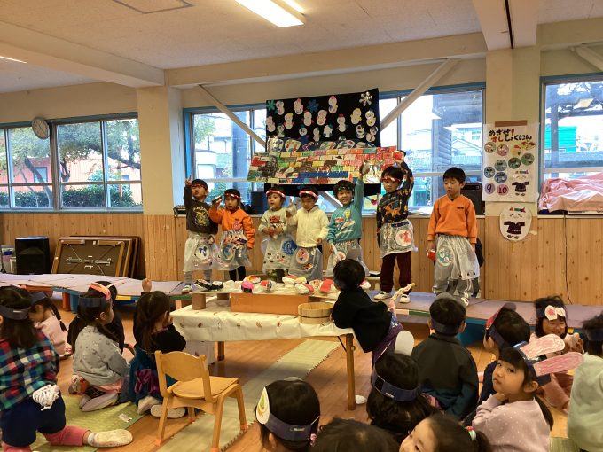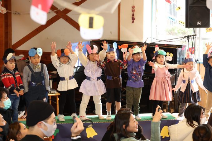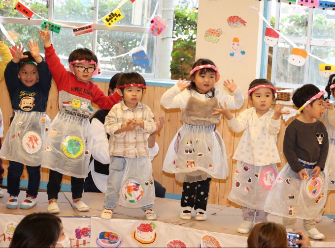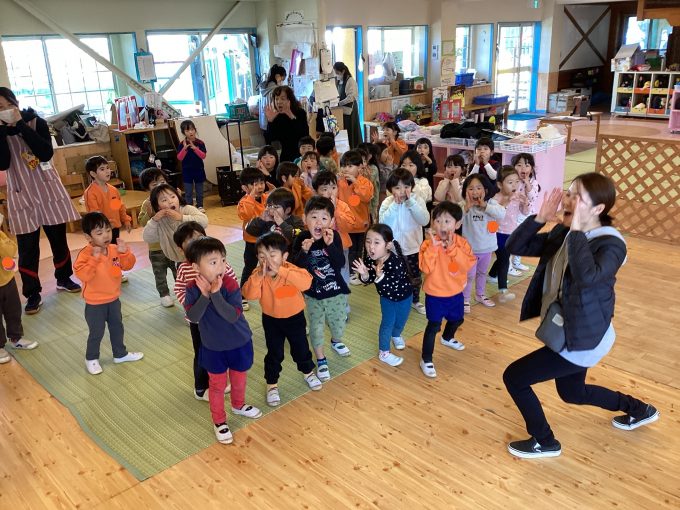 普段過ごしている保育室で、日頃楽しんでいるダンスや劇あそびの様子を