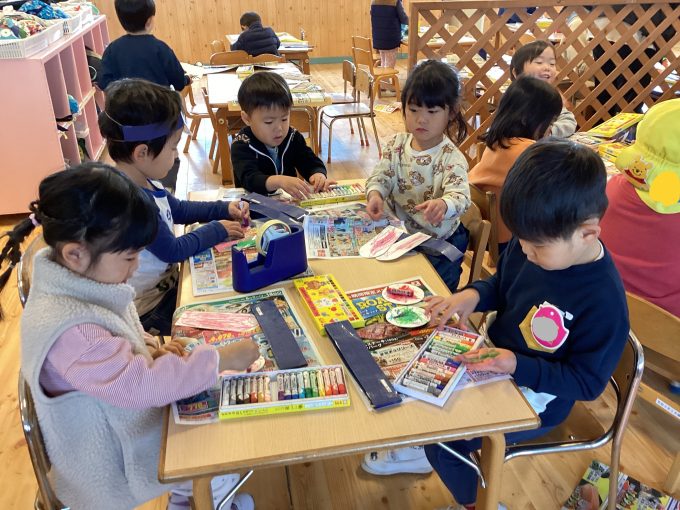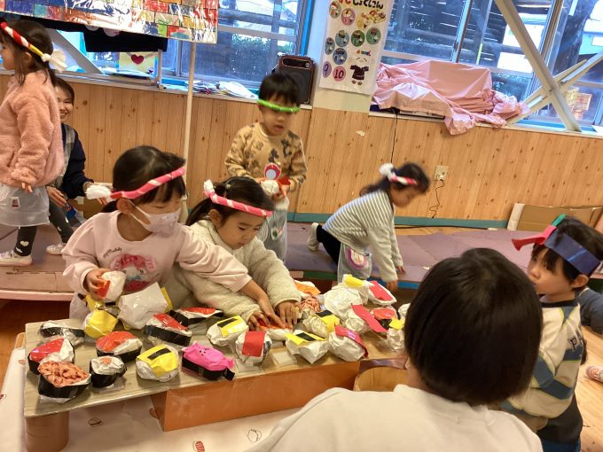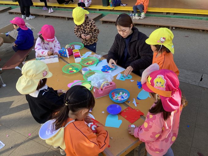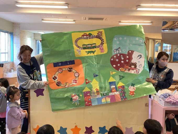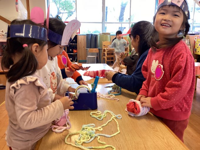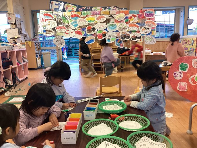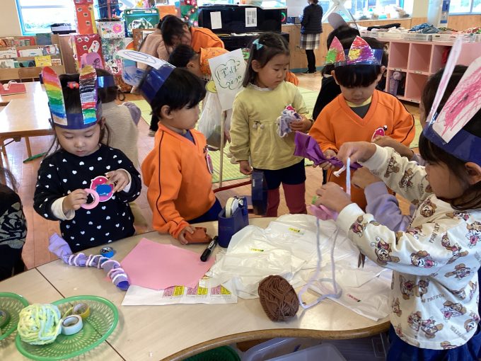 それぞれのグループで、遊びの中で作ってきた飾りや製作物などもあります😊