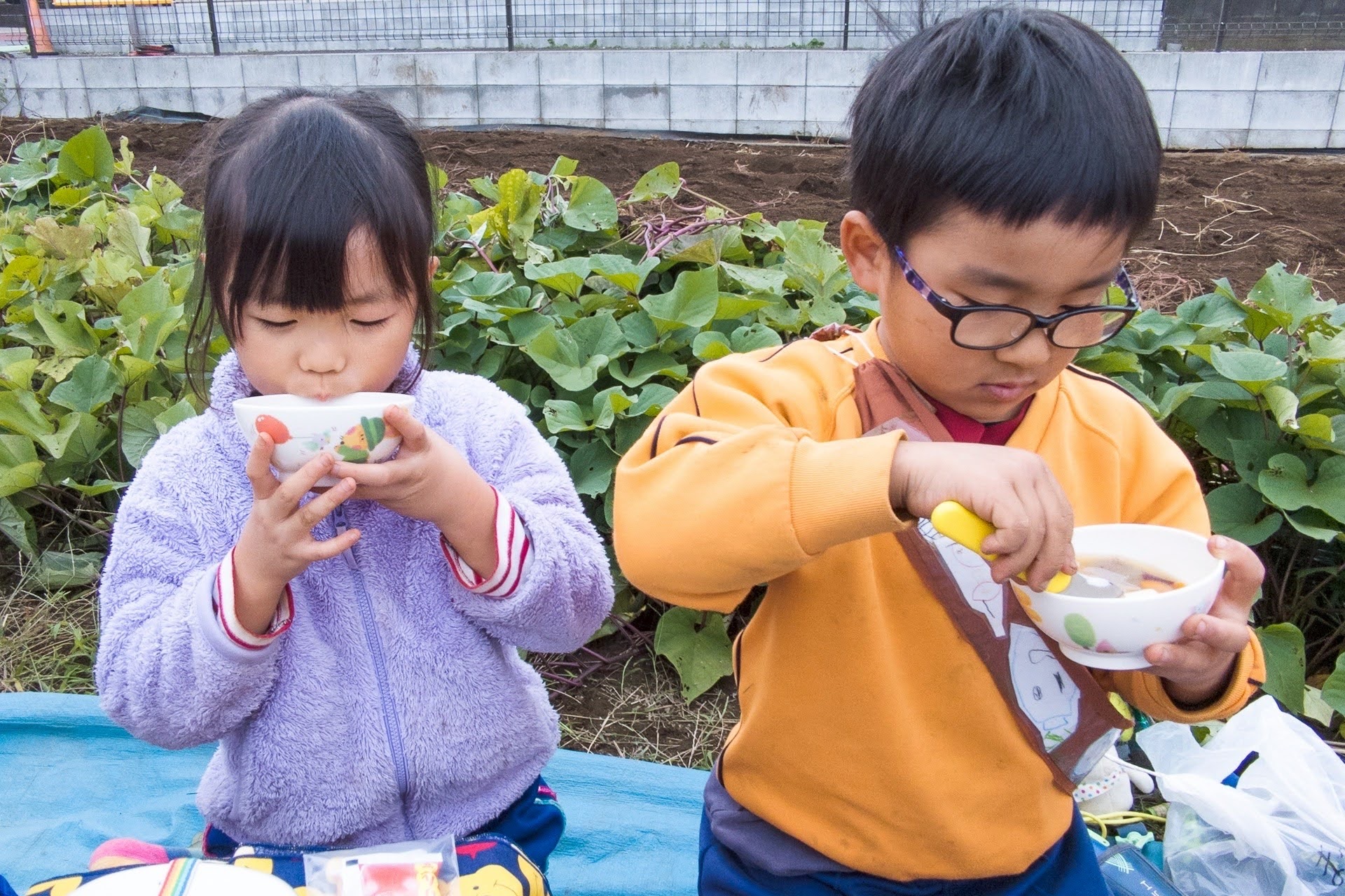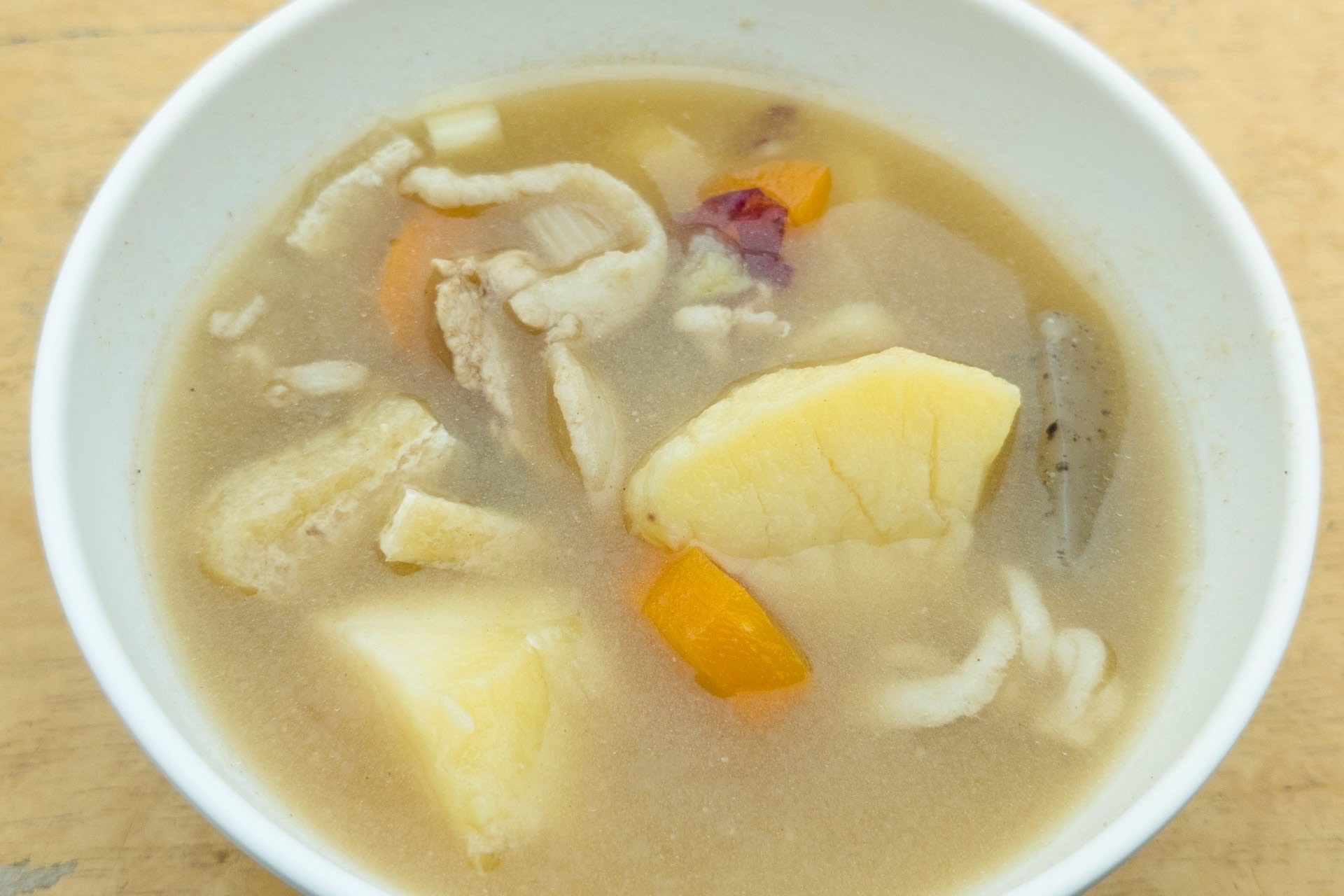 畑で採れたさつまいもとにんじん入りの豚汁✨