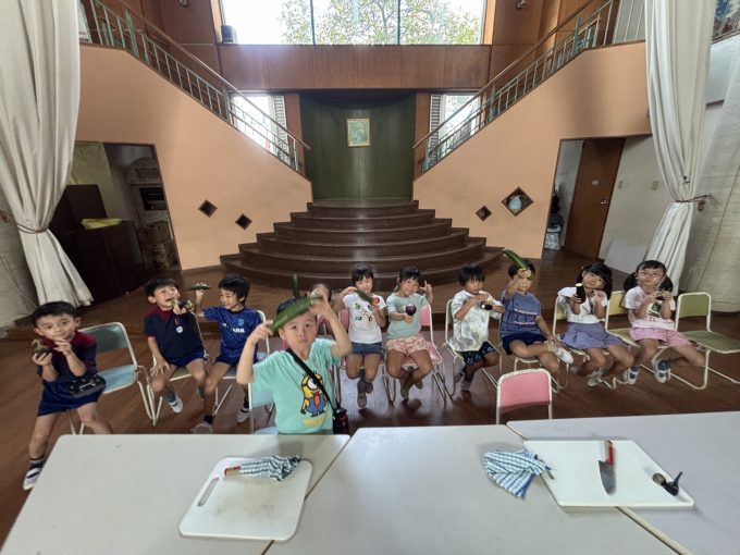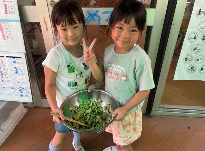 収穫した野菜は、みえこ先生に教えてもらいながら、クッキング👨🍳