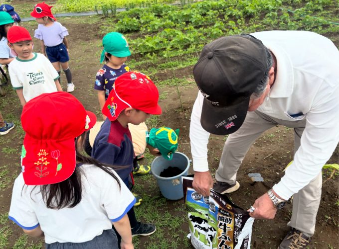 栄養たっぷりの土が必要だと教えてもらい、肥料を撒きました!