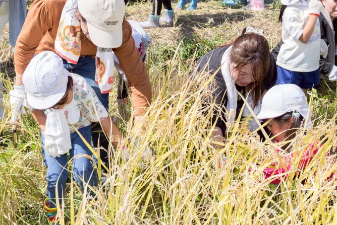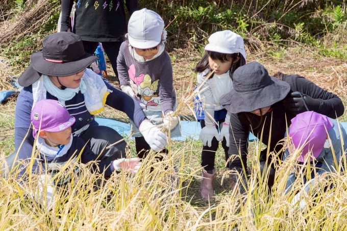 おうちの方の力を借りながら稲刈りを進めていきます。