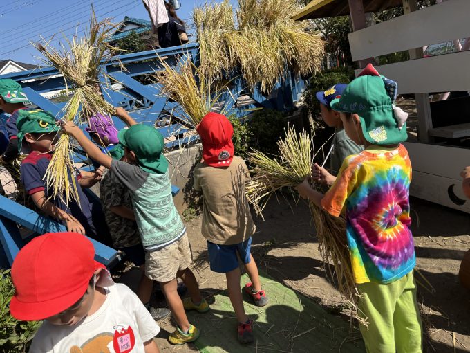今年は、夏の暑さでなかなか田んぼに行けないこともありましたが、田植えから稲刈りまでは無事にできました。子どもたちにとってたくさんのワクワクドキドキが感じることが出来た健伸田んぼ。次はお米パーティーに向けて、「脱穀」「籾摺り」「精米」が始まります。おいしいご飯が食べれるようにみんなで協力していこうと思います。