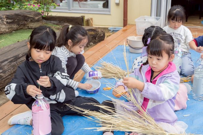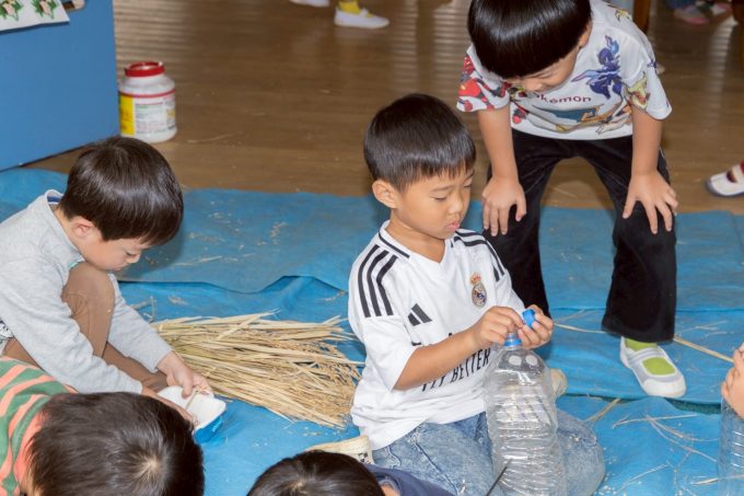 そして、クラスごとにアイデアを出し合い自分たちなりの脱穀も始まりました。