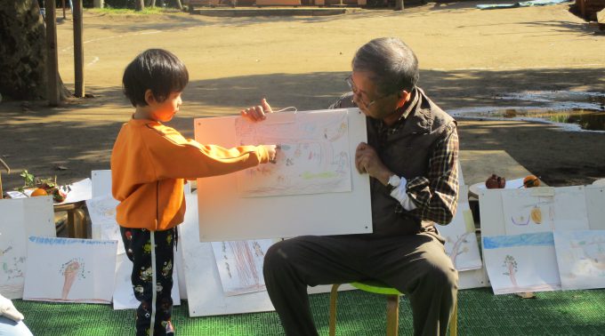 最後にみんなの絵を並べて、子どもたちでお互いの絵のお気に入りのところを発表しました♪