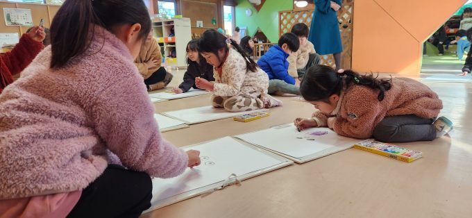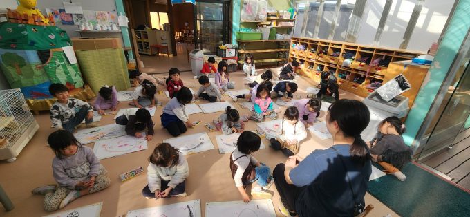 いつも以上に子どもたちは、勢いよく思い思いに描いていました♪