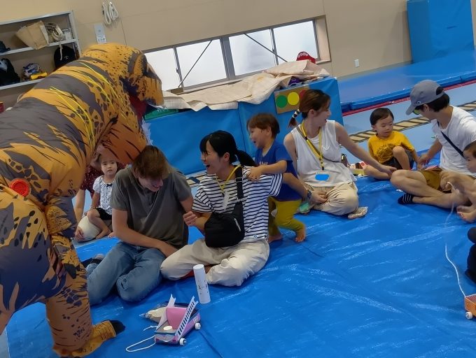おおきい絵本をみていたら、おおきな恐竜が!!!!(恐竜の中:宮本先生)