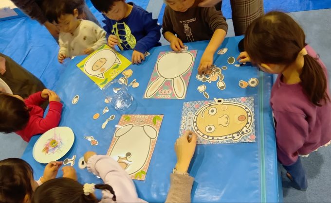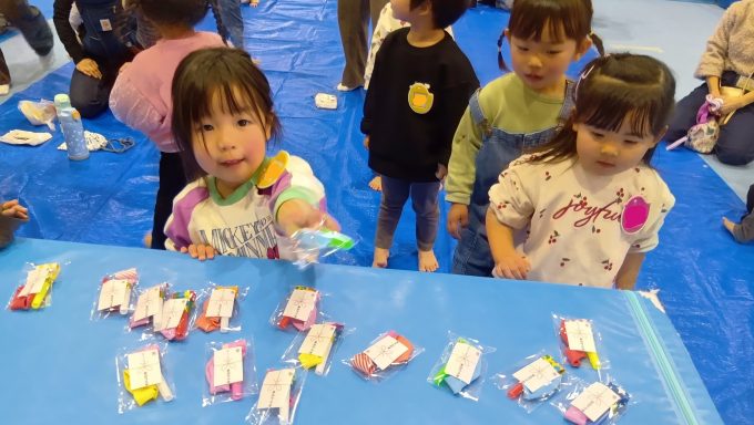最後は先生たちからお年玉のプレゼント🎵「どれにしようかなぁ…」「このいろにする!」すきないろを選んで、みんなルンルンでお持ち帰りしてくれました。