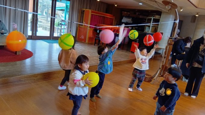 元気にふうせん羽根つきをポーンポーンッ!!!