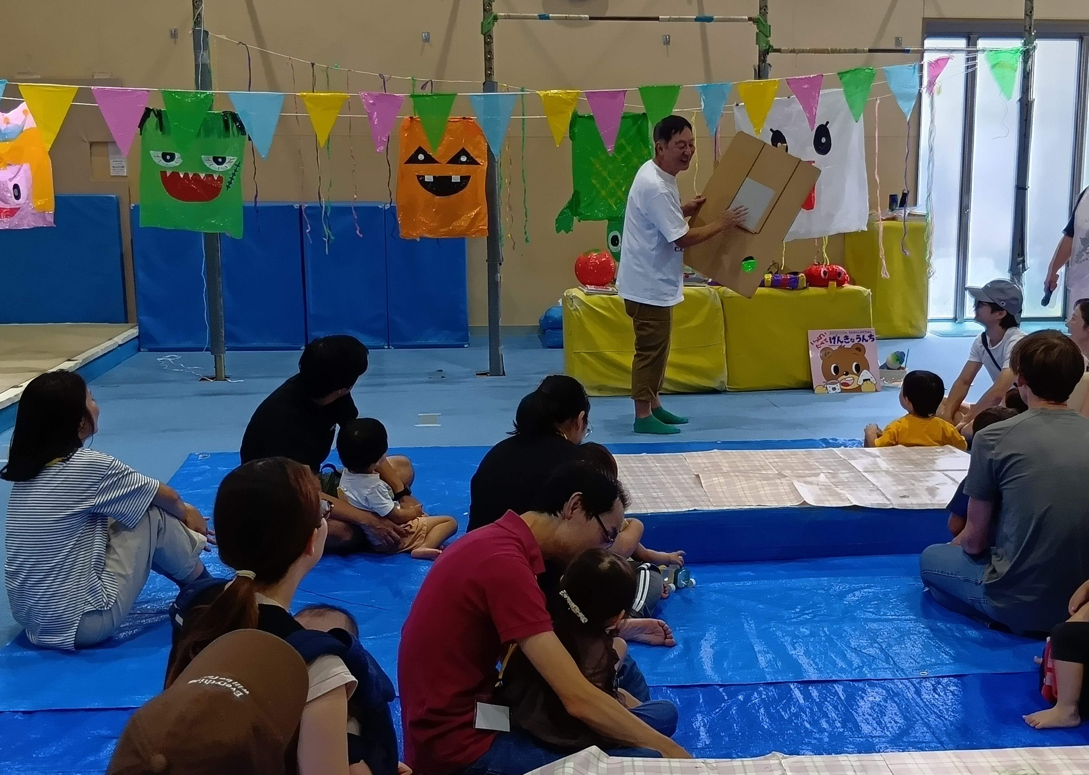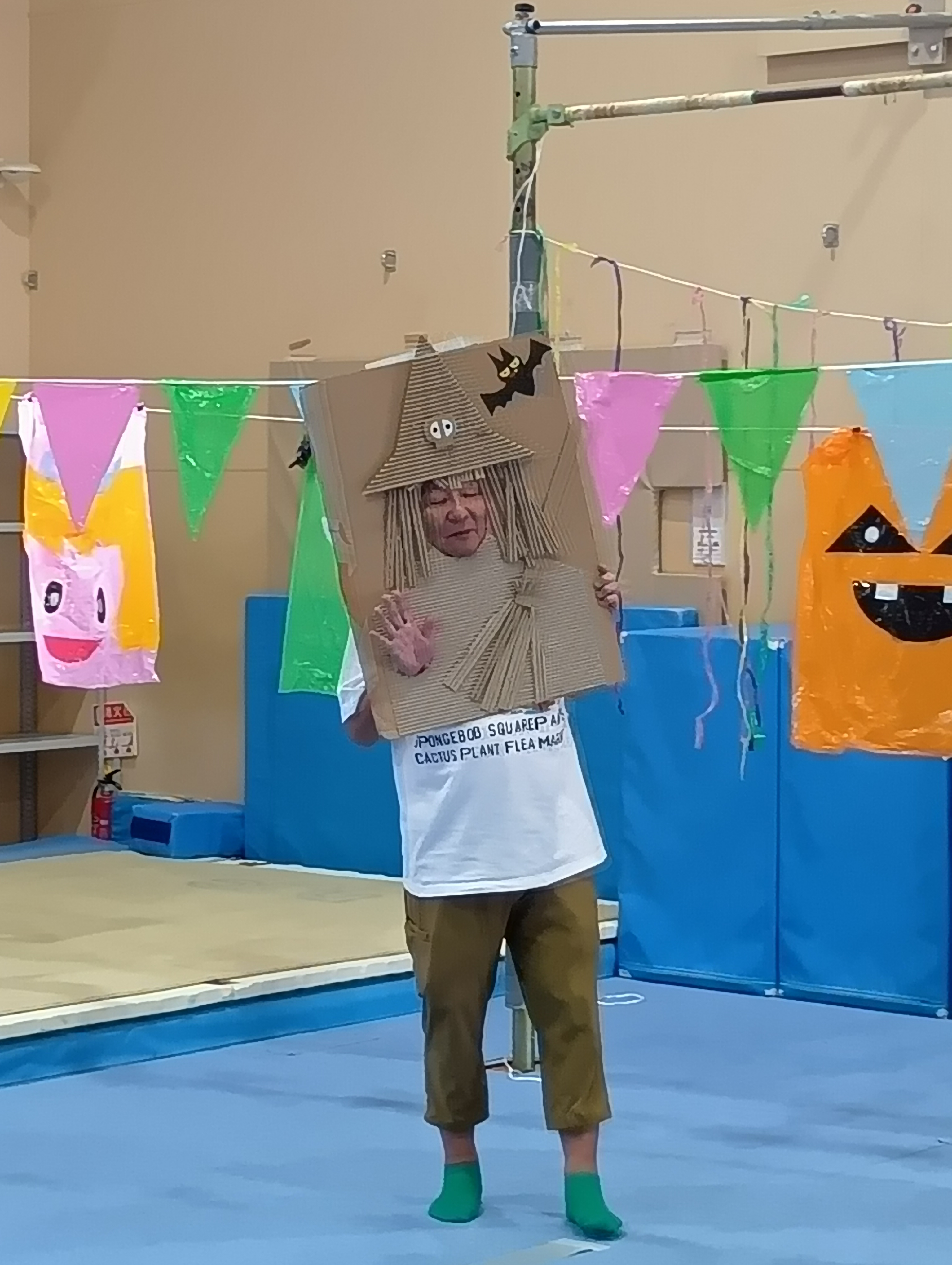 宮本先生が作ったいろいろな工作作品で遊んだり、先生のトークもユニークでニコニコ😊笑顔のみんなでした🎵