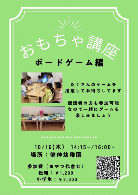 🔵健伸教育研究所主催 『おもちゃ講座 』10月【ボードゲーム】のご案内