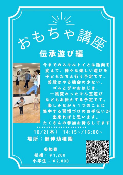 🔵健伸教育研究所主催 『おもちゃ講座 』10月【むかしあそび】のご案内