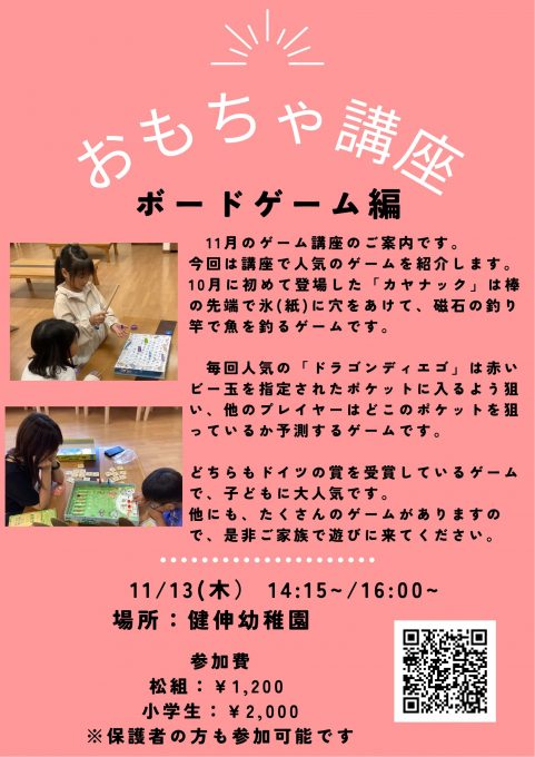 🔵健伸教育研究所主催 『おもちゃ講座 』11月【ボードゲーム】のご案内