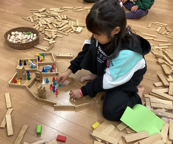 第一部のお友だちは、健伸幼稚園を積み木で表現しました。