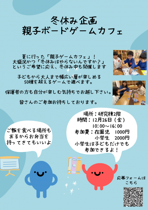※ボードゲームは、在園児(花親子・竹親子・松親子)、小学生以上の参加ができます。