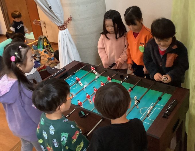 その先生たちでこっそりおもちゃのお楽しみの計画をたてました。