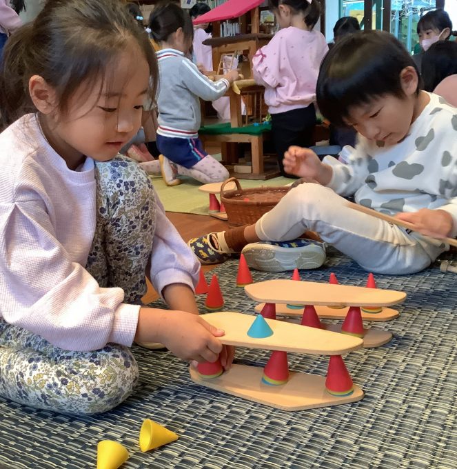 どんなおもちゃなのか触って試したり、ルールをお友だちと考えたりと、