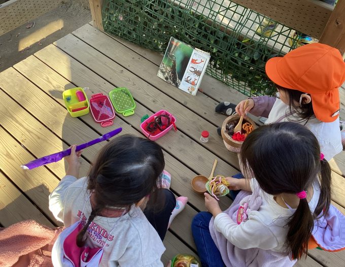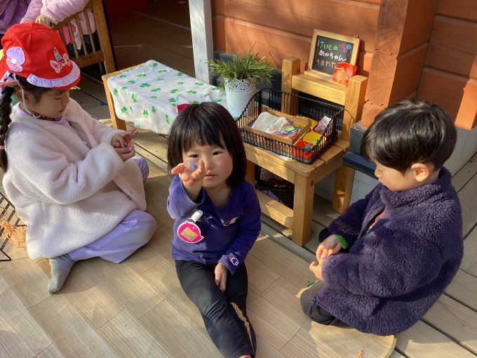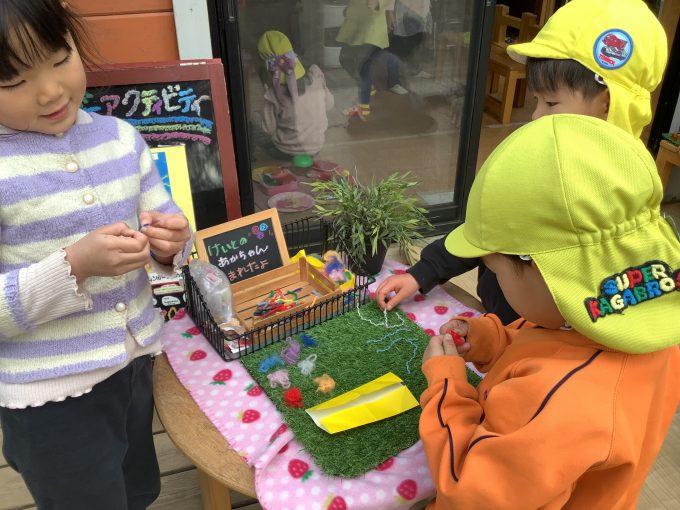 『〇〇ちゃんの作っていた編み物やりたいな』『また来たよ』と、子どもたちが食後の暖かくなった時間にあそびに来ます。